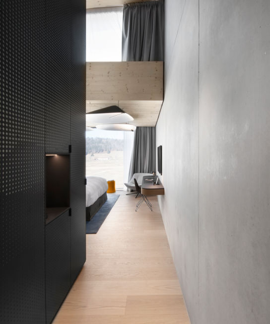 Jeder Superior Room verfügt über zwei Obergadenfenster. Tageslicht bietet somit dem Raum eine angenehme Atmosphäre und ein schöner Blick auf die natürliche Umgebung des Risoux-Waldes. Nehmen Sie sich Zeit für sich.