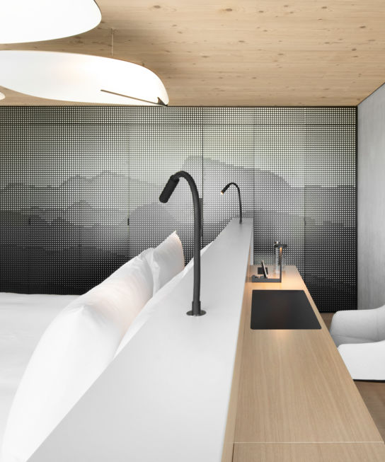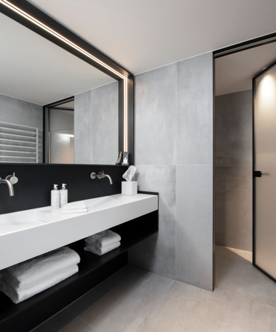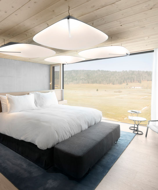 Description: In addition to the breathtaking view of the Orbe river which meanders through the Vallée de Joux, the spacious Junior Suites are equipped with contemporary design furniture and welcome you in a warm atmosphere. Nature will be present in every detail. Relax thanks to the light and grandeur of the Risoud forest. The living room, fully equipped with the latest technologies, offers a comfortable space to awaken your senses through the soft nuances of daylight and nature. This unique adventure is completed with a large bathroom, fluffy bathrobes and Swiss eco-friendly amenities from Alpeor® .
